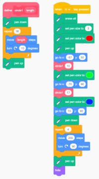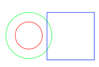 Scratch: Zeichnen zwei konzentrische Kreise, ein Quadrat, das Quadrat muss den äusseren Kreis in zwei Punkten schneiden und den inneren nicht berühren.